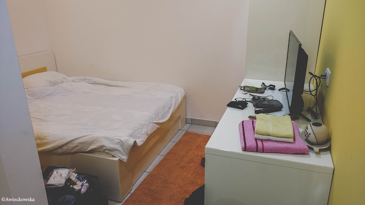 Na miejscu okazało się, że nasza łazienka jest po drugiej stronie mieszkania i żeby do niej dojść, trzeba było przejść przez wspólny salon i kuchnię… Wynajmujący oczywiście nie podał informacji o braku windy oraz o tym, że łazienka jest, ale na zewnątrz. Przy podróży z małym dzieckiem takie rzeczy mają ogromne znaczenie.