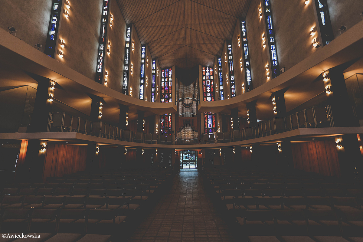 Kościół to przede wszystkim niesamowite witraże, które znajdują się schodkowanej fasadzie świątyni. Witraże wykonał Ralph Bergholtz. Witraże nawiązują do Księgi Objawienia i liczby siedem (liczba okien w prezbiterium, 7 filarów, 7 gwiazd w schodach prowadzących do koscioła, ).