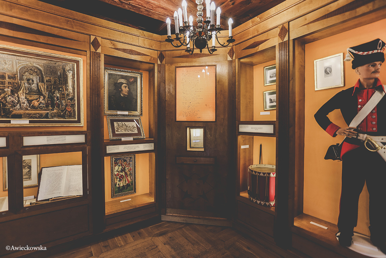 W Muzeum zobaczyć można nie tylko wystawy, ale też zaaranżowane wnętrza z czasów, kiedy w dworze mieszkał Józef Wybicki.